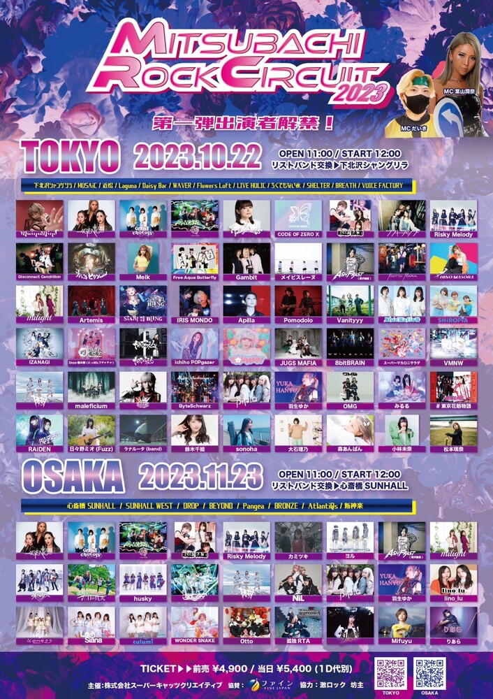 2023.11.23 「MITSUBACHI ROCK CIRCUIT 2023 inOSAKA」 Schedule 2023/11/23(木) 11:00 - 大阪心斎橋エリア8会場 2023.11.23 大阪心斎橋エリア8会場のサーキットフェス 「MITSUBACHI ROCK CIRCUIT 2023 inOSAKA」 open:11:00 / start:12:00 adv/door:¥4900/¥5400+1d URLをコピーする 報告する